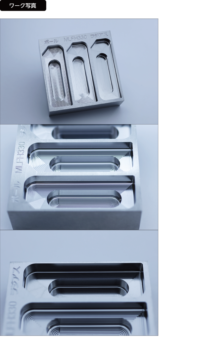 ●高硬度鋼加工用の無限コーティングプレミアムの採用で、65HRCまでの高硬度鋼に対応。